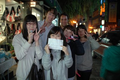 Eine der wohl erstaunlichsten Erfahrungen war folgendes: Als wir einen der alten Tempel Seouls besucht haben, kamen viele Schulkinder auf uns zugestürmt und sprachen uns ganz begeistert in recht gutem Englisch an. Einer der Jungen stellte fest, dass ich “tall” wäre und eines der Mädchen meinte ich wäre “hansom” :-) Außerdem wollten sie unbedingt Fotos mit uns machen. Am selben Tag sind Christoph und ich zusätzlich von einer Gruppe Mädchen angesprochen worden, ob wir an ihrem Schulprojekt “Survey for foreigners” teilnehmen würden: Sie haben uns gefragt, wo wir herkommen (sie stellten begeistert fest, dass eines der Mädchen schonmal in Deutschland war und “…she loves it.”), ob wir vorher schonmal in Südkorea waren und ob wir es mögen. Dann durften wir eine Frage ziehen: “Nennen Sie einen berühmten Koreaner!” - nun, leider ist uns Ban Ki-Moon erst später eingefallen, sodass wir eine neue Karte ziehen durften: “Nennen Sie ein koreanisches Gericht, das Ihnen schmeckt und das Ihnen nicht schmeckt” - darauf viel uns die Antwort leicht, denn wir kannten genau zwei Gerichte beim Namen: Bi Bim Bap und Kimchi :-) Wobei Bi Bim Bap nichts weiter heist als “gemixter Reis”, das koreanische Nationalgericht bestehend aus einer Schüssel mit verschiedenste Gemüsen und etwas Fleisch, welches man mit Reis und scharfer Pepperoni-Sauce mischt. Kimchi….nun Kimchi halt :-) fermentierter Chinakohl eingelegt in scharfer Pepperoni-Sauce. Das witzige an Kimchi ist: es gibt wohl ca. 200 verschiedene Arten davon, die Koreaner essen es früh, mittags und abends (kein Witz!-keine Mahlzeit ohne Kimchi) und (das beste) jeder Haushalt hat einen extra Kimchi-Kühlschrank, denn es wird genau zwischen 6°C und 10°C gelagert^^